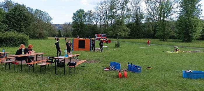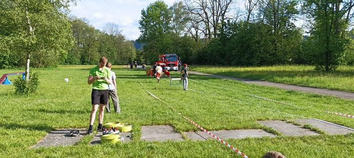 Když jsme se sešli tak jsme šli stavět tratě požárního útoku CTIF a 60 metrů s překážkami.